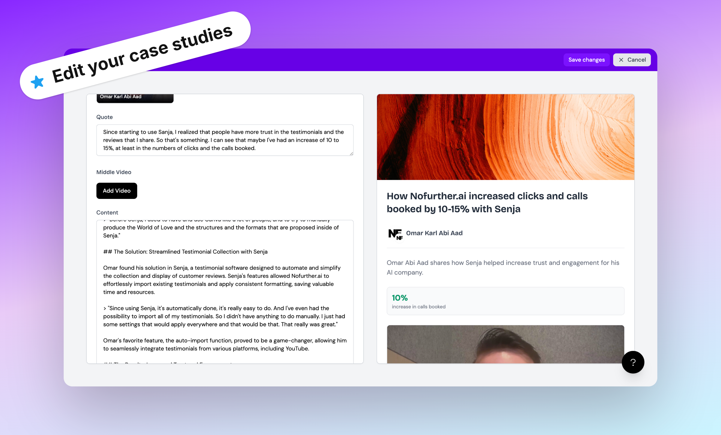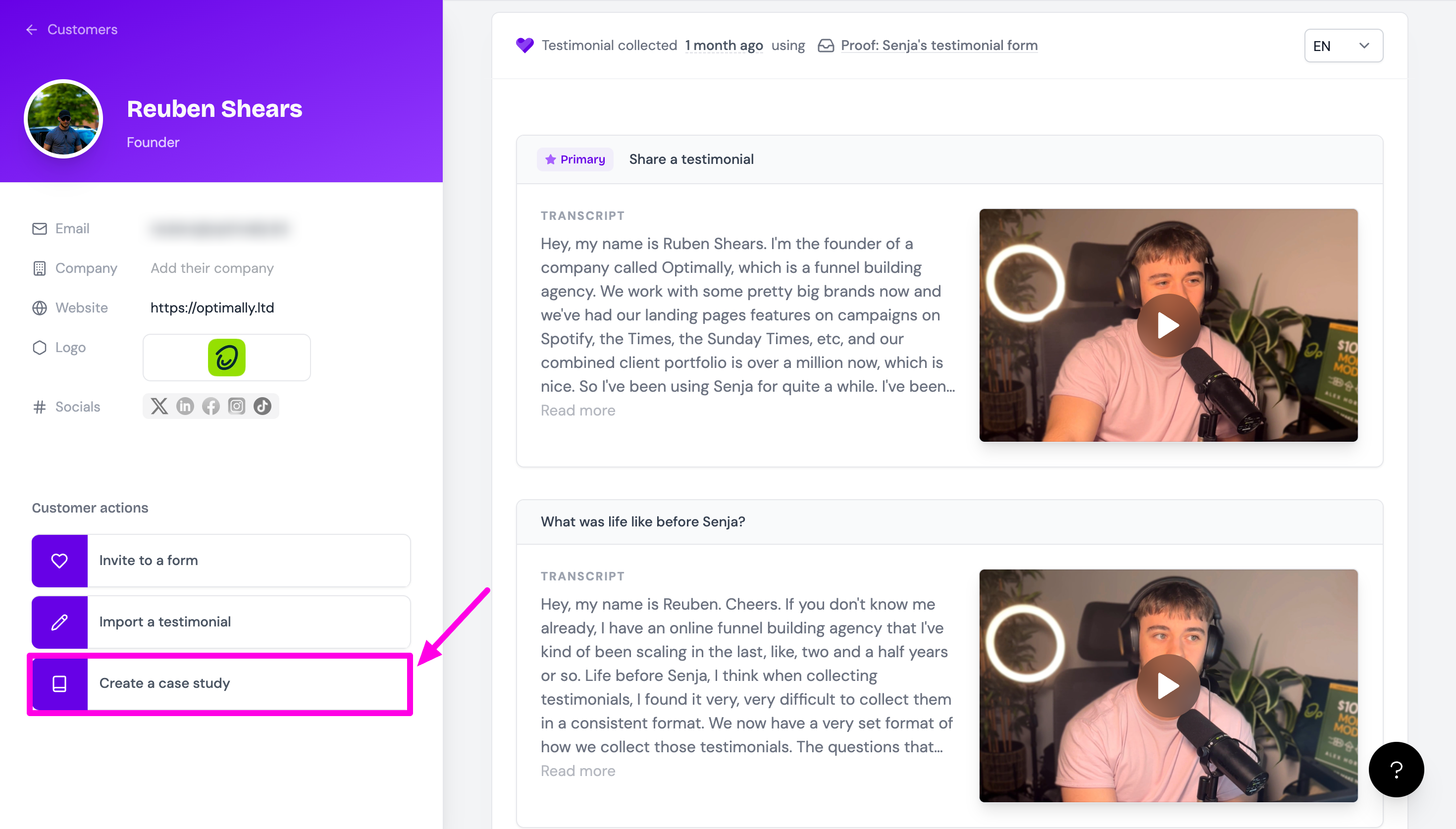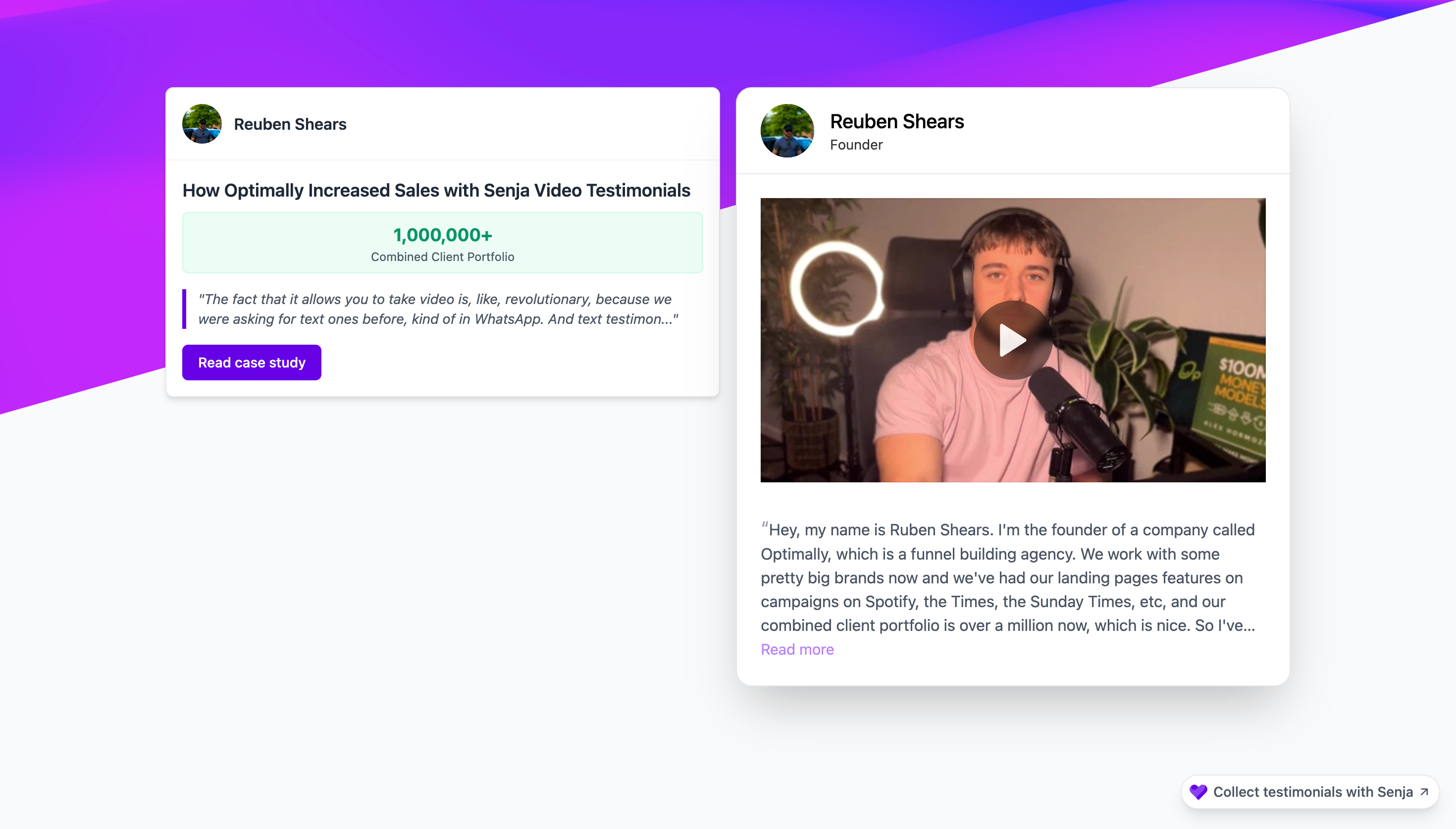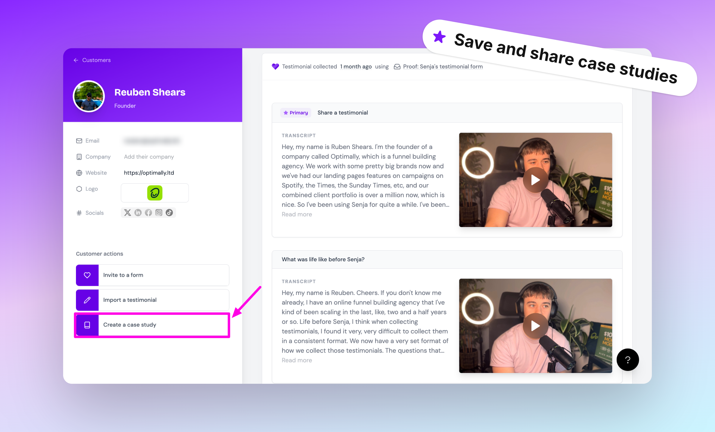 And the case study you make will be saved in your Senja account, and ready to share with your leads. Here’s what sharing a case study (and testimonial) looks like: