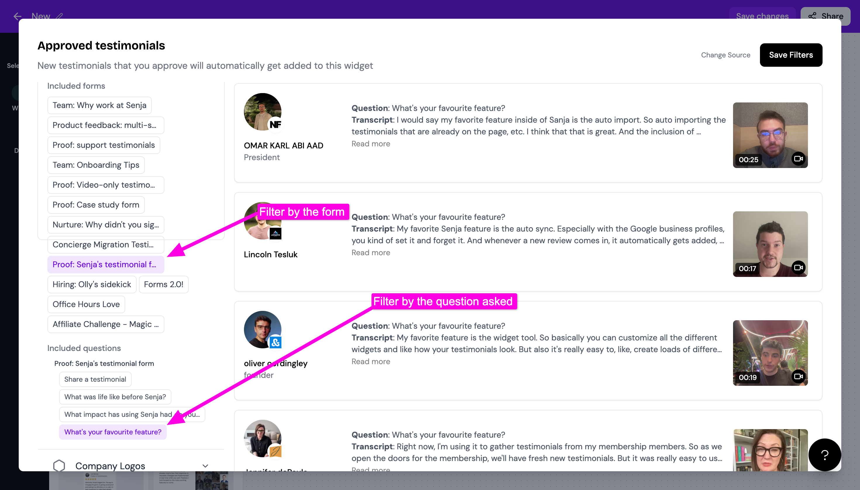You can now pick and add your best customer video clips to your favourite widgets, Walls of Love, popups and embeds.